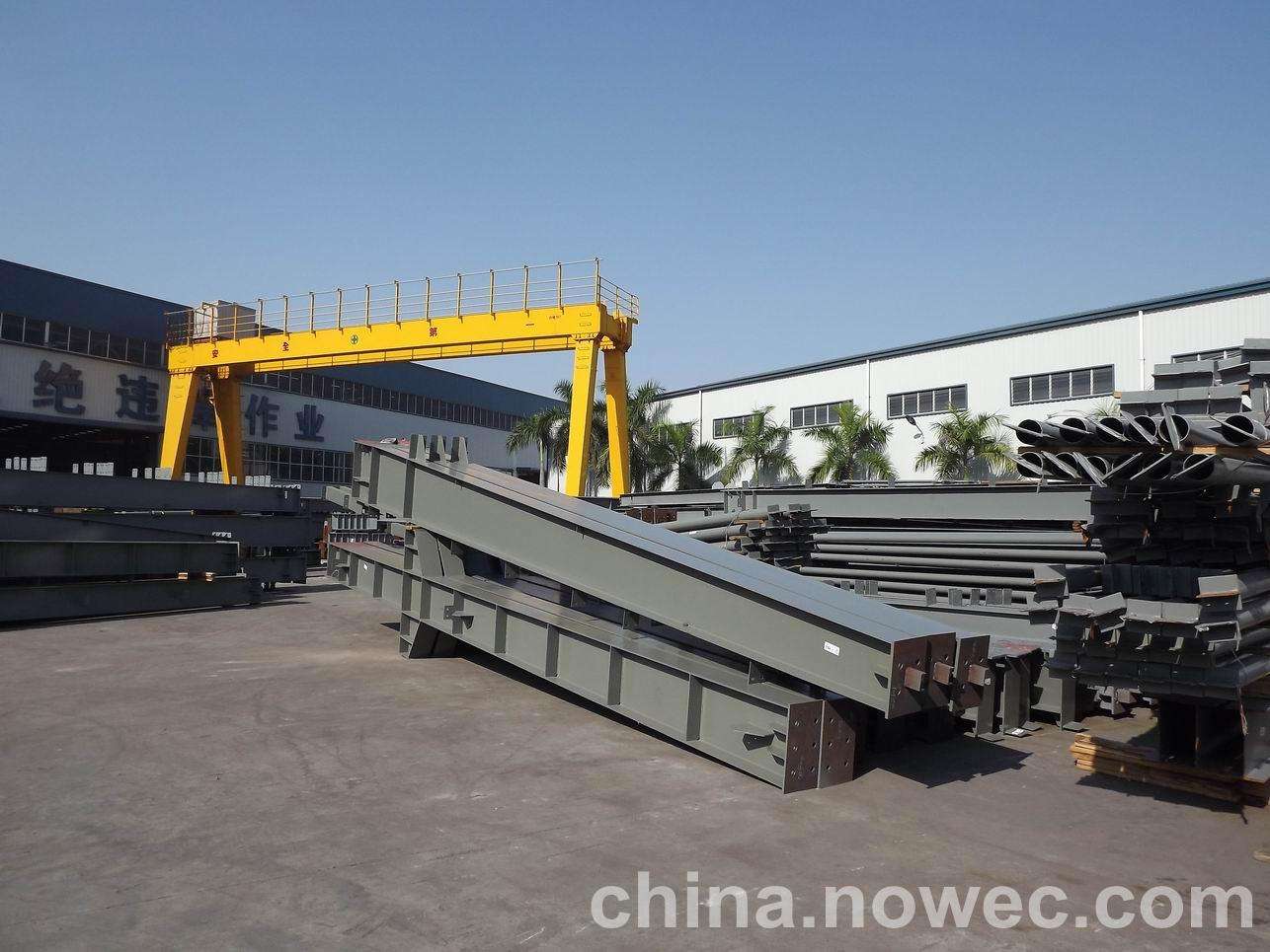 条状单元一般沿长跨方向分割,其宽度约为1~3个网格,其长度为l2或l2/2(l2为短跨跨距)。块状单元一般沿牙克石网架平面纵横向分割成矩形或正方形单元。每个单元的重量以现有起重机能胜任为准。条(块)与条(块)之间可以直接拼装,也可空一网格在高空拼装。由于条(块)状单元是在地面拼装,因而高空作业量较高空散装法大为减少,拼装支架也减少很多,又能充分利用现有起重设备,故较经济。这种安装方法适用于分割后网架的钢度和受力状况改变较小的各类中小型网架,如两向正交正放四角锥、正放抽空四角锥等网架。